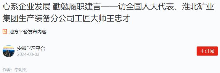 临近全国两会,全国人大代表、淮北矿业集团生产装备分公司工匠大师王忠才的建议基本定稿。“今年还是关注企业发展,毕竟我是来自企业一线的代表。”他说。